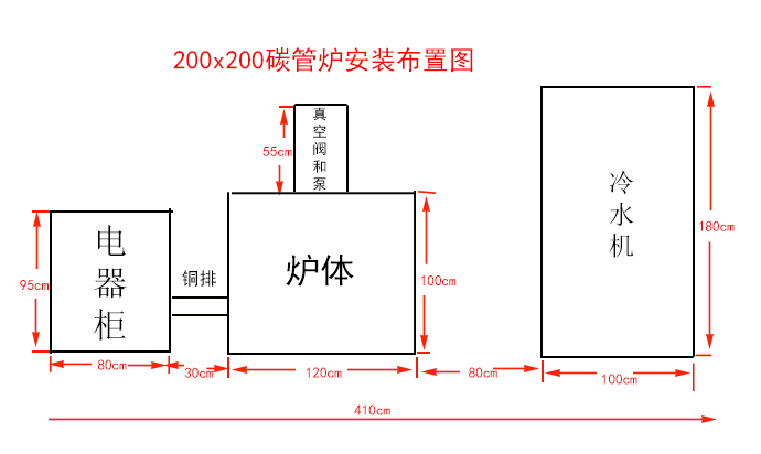 炉子用电三相380V,50平方线,空开130A 冷水机功率15.5KW,三相380V电,6平方线,空开32A 水冷机最好用去离子水或矿泉水,水冷机前后左右空出80cm距离 |